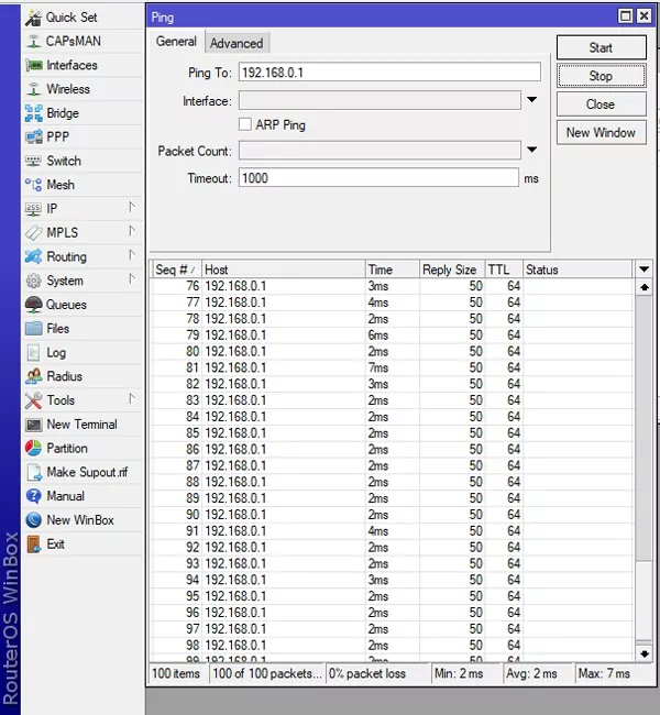 Geen enkele packet loss kon worden vastgesteld bij 100 pings.