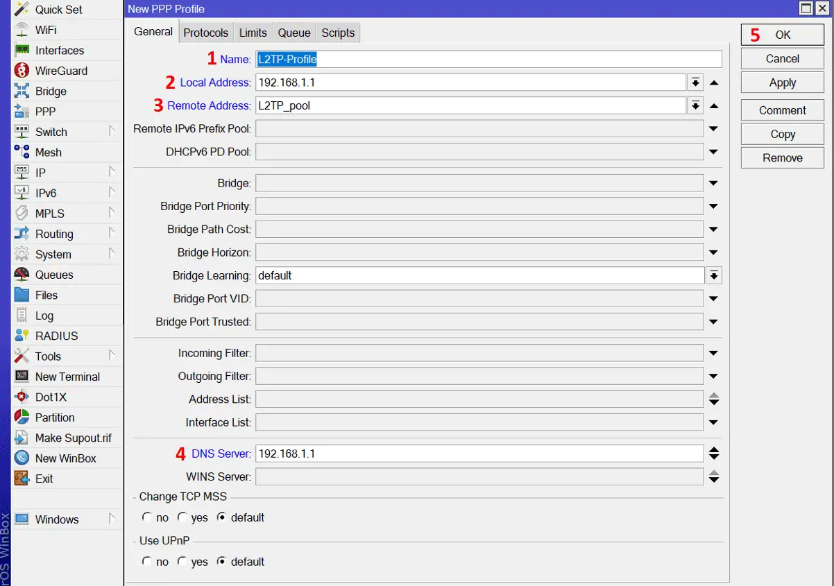 - Selecteer het profiel dat je zojuist hebt aangemaakt, bijvoorbeeld L2TP-Profile. Zo krijgt deze gebruiker het juiste IP-adres en DNS-instellingen.