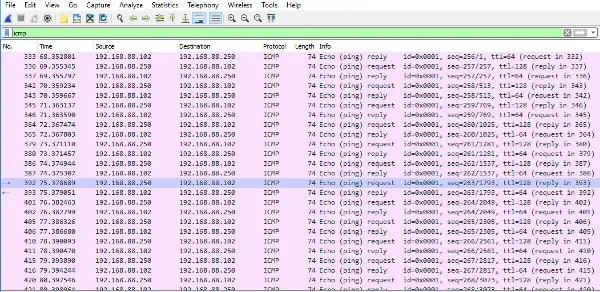 Hier ping in naar een camera, niet duidelijk maar als je zelf je router hebt geconfigureerd zal je nog veel toffe momenten beleven met het uitlezen van de data. Niet dat ik daar alles van ken maar er bestaan mooie onderwerpen betreft wireshark.
